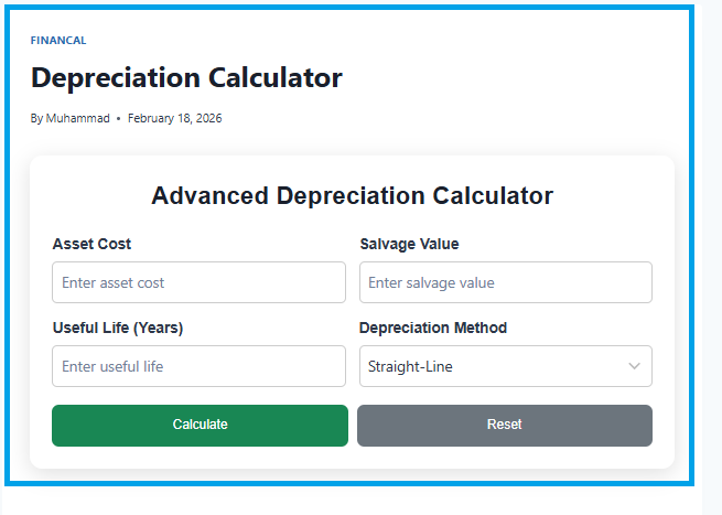 The Depreciation Calculator is a practical tool that takes the guesswork out of tracking asset value over time. Whether you are managing business finances, preparing tax return figures, or learning accounting basics, this tool gives you instant, accurate results with clear interpretations.